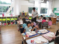 明日は七夕なので、星に見立てたチーズの入った七夕寿司と、星型のおふが入ったすまし汁と星型のナタデココの入ったゼリーで七夕献立でした。1年生の教室に入ると、「星が4つも入ってたよ!」「星見えた!」とみんな口々に教えてくれました。七夕寿司は、チーズが苦手な子もいたようですが、おかわりをして食べてくれて食缶が空になっているクラスもありました。今日も「おいしい!」という声をたくさん聞くことができてよかったです。(栄養士)